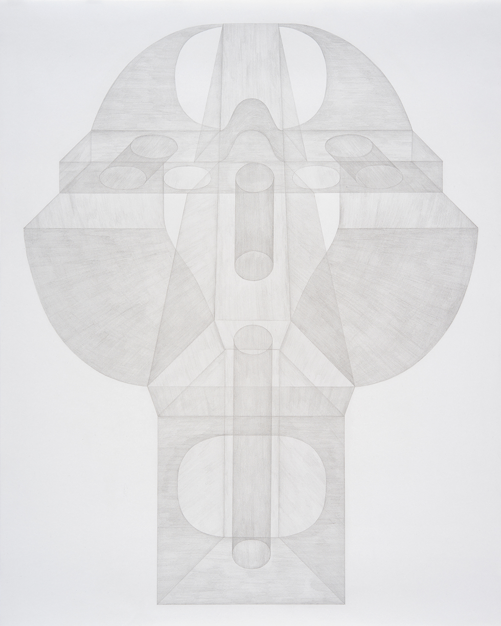 The artist develops a sculptural practice that understands drawing as a sculptural medium. Using pencil and large-format paper, she creates precise, symmetrical compositions reminiscent of architectural and technical structures. Layering creates filigree, two-dimensional structures that evoke an ambivalent spatiality.