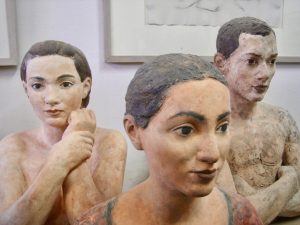 Robert Metzkes wurde 1954 in Pirna in eine Künstlerfamilie hineingeboren. Von 1972 bis 1977 studierte er Bildhauerei an der Hochschule für Bildende Künste in Dresden bei Helmut Heinze und Gerd Jaeger. Zunächst beschäftigt sich der Bildhauer mit Bronzeskulpturen, seit 1985 arbeitet er aber vor allem mit farbig engobierten Terrakotta-Plastiken. Metzkes lebensgroße Terrakotten und seine kleinplastischen…